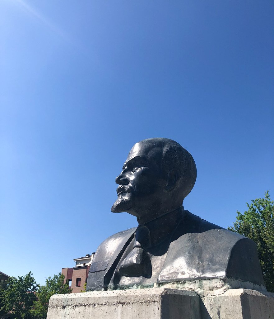 There is one statue, though. One Lenin depiction, bronze frown and all, that doesn’t seem to be in a hurry to be moved away. And it’s not where you’d expect it to be.